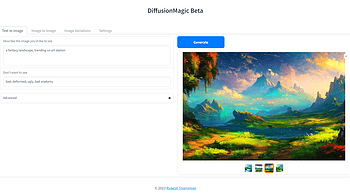 DiffusionMagic is simple to use Stable Diffusion workflows using diffusers . Features Supports various Stable Diffusion workflows Text to Image Image to Image I...