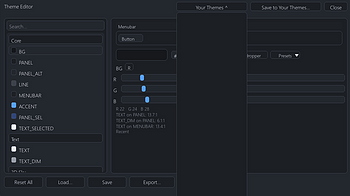 Theme Editor Dropdowns behave. Presets and “Your Themes” lists stay on top and don’t let clicks pass through. Clear hover states. Buttons and list rows hi...