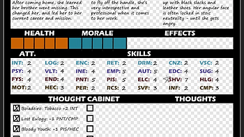 Changed Perception to be a part of Mind, and lock-picking to be a part of Craft. Agility and Survival were being rolled way too often for most playtests compare...
