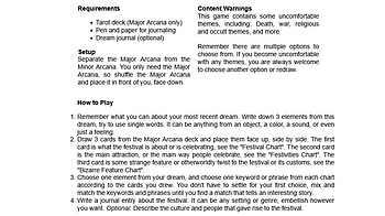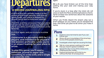 Hi everyone, Thank you for downloading Departures, I hope you're having a great time playing it! I just uploaded a one-page version of the game for anyone who i...
