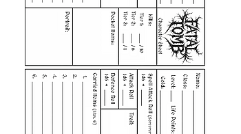 Fatal Tomb v1.2 Example character builds corrected and standardised Kill tracking added to example characters Carrying capacity clarified Character sheet page a...