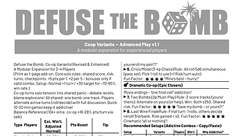 Hey bomb defusers! Big update based on playtester feedback: **full Co-op Mode Expansion** for 2-4 players! Turns solo tension into shared panic – debate rerol...