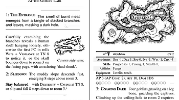 Six prisoners on an island, deep in a cave, surrounded by stagnant water, all waiting for goblins to eat them. But one of them has money, so the PCs must rescue...