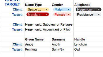 Added the following: For quick NPCs: catchphrase signature question “play like” a well known sci-fi or sci-fantasy character For quick names: vehicle model...