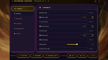 48 features • Desert Storm UI • Press [INSERT] in‑game ⚔️ COMBAT MODULE (12) ❤️ Infinite Health 📝 Edit Max Health (0‑9999) ⚡ Infinite Stami...