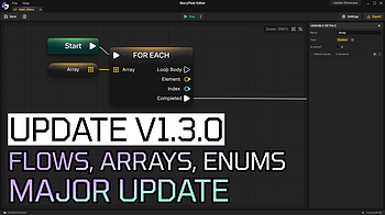 A major update introducing Flows for reusable subflows within scripts, array and enum variable types, new image/character/audio variable types, input fields in...