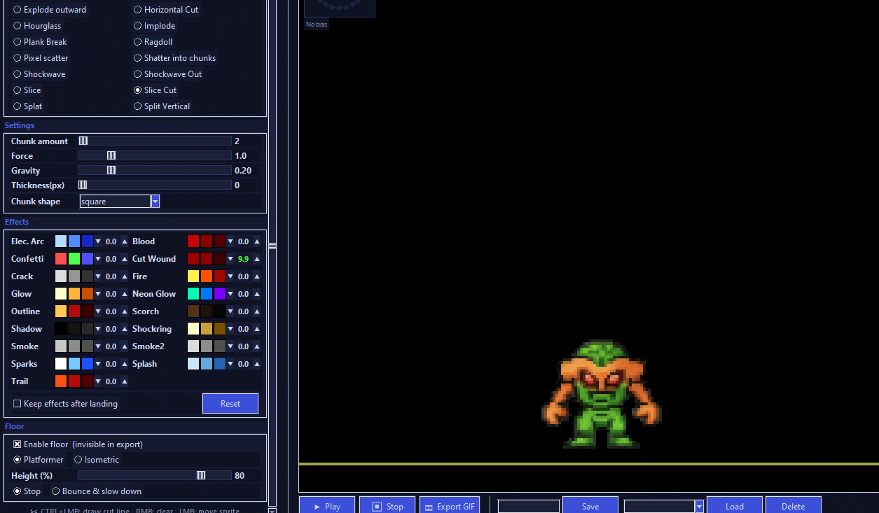 New effects and posibility to dram slice line to cut spritein halw in needed position also new efect Cut Wound for bloody cut...
