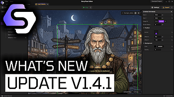Introduces The Beast of Millhaven example project with a full interactive story showcasing all StoryFlow features. Major UI editor improvements including typewr...