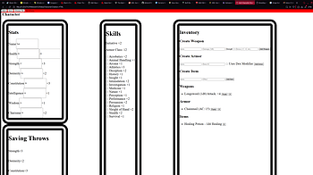 Working on a character sheet with stats, skills, saving throws, and items!...