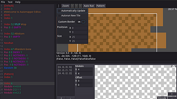 -Made debug look better. -Change position of the image name. -Added tool settings. -Changeable boarder size. -Basic automap while drawing tiles. -Tile grouping...