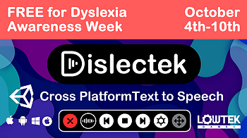 Hi, to celebrate dyslexia awareness week 4th -10 of October we have made Dislectek free for the whole week The unity plugin allows game developers to quickly ad...
