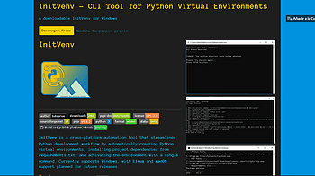 The project "Init Venv" ( Init Venv - PyPI - Init Venv ) is now available! It currently includes three versions for Windows (Linux and macOS will follow soon)...