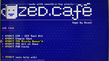 Start at: https://zed.cafe and arrow up to the line: Press ENTER and the page should reload and you'll be presented with a readme : From here type: #chat <twitc...