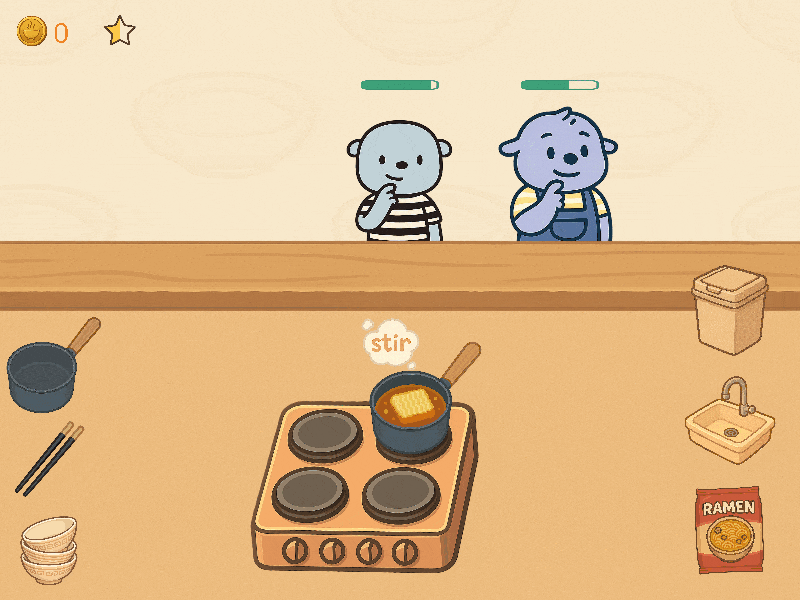 Hey everyone! 👋 I’m a solo dev working on a small ramen restaurant game. You’ll cook noodles, serve customers, and try to survive the lunch rush without...
