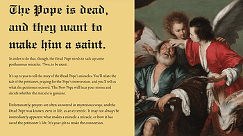 I find myself basically looking at a few major sources for storytelling mechanics, here. One of them is T.W. Wombats' Historia Obscura , which I think has a rea...