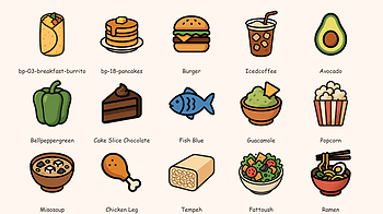 Devlog Update – SoybeanPixelz Food Icons Added charcoal + white silhouette variants for every icon (1024 & 256 px) to make recolors and tint overlays painless...