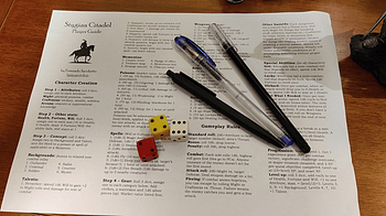 This little note card character sheet works great for a mobile solo RPG kit. One side is the character and main gear. The other side is for more gear and notes...
