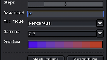 Rampart version 1.1.0 introduces an improved “Perceptual” mixing algorithm based on the Oklab color space , which looks a lot better than the naïve linear...