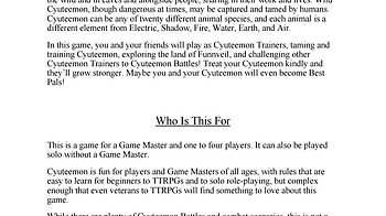 I have a special announcement today: Cyuteemon, my newest TTRPG, has been published! Cyuteemon are adorable elemental animals that Trainers tame and form bonds...