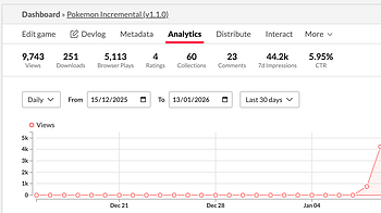 01/12/26 continued to set up stats functionality for Scarecrow Battles monitoring new update for any issues checking player analytics and player progress...