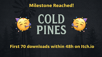 I honestly can’t believe the response. My first ever released game, Cold Pines, just reached 70 downloads in less than two days. I was hoping a few people mig...