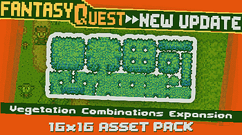 Seamless nature tiles for your RPG world! This update expands the Fantasy Quest terrain with new vegetation tile combinations — connecting grass, bushes, and...