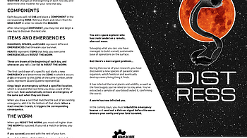 DISTRESS is a one-page game that I designed as an entry for the Eternal TTRPG Jam in March 2025. I was able to get a workable version ready, which you will find...