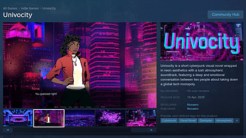 Univocity has just been released on Steam! You can get it here : Univocity on Steam Also if you buy the game on itch.io, you get a free Steam key for the game...