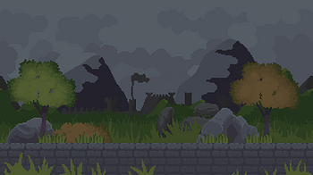 -- Resurrection Version 1.0 Content -- Parallax Background 2 rock assets Brick tileset with grass [32x32 px] 2 Bushes 2 Trees Swordsmen (idle, run, attack, deat...