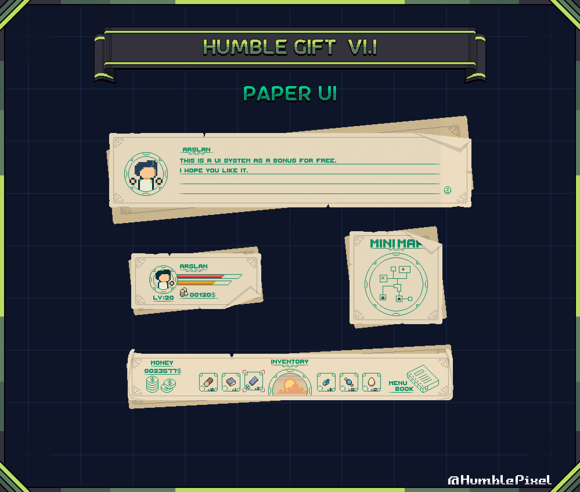 FEATURES This soft, paper-themed pixel UI kit is offered completely free. It’s designed to help you create engaging and tactile user interfaces with charming...