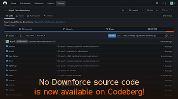 The source code for No Downforce is now also available on Codeberg! Check it out here. Keep in mind that now, the repo requires Git LFS to be set up on your sys...