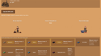 The core skill UI is hooked up (Woodcutting, Mining, Smithing, Cooking, Combat). Camp buildings are in with upgrades. The Workshop is live with tool tiers and N...