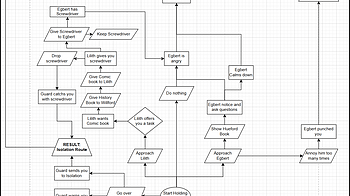 No video this time, but I have taken a bit of a step back to create a 'player choice graph' so I have an idea of what major choices the player can choose, which...