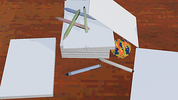 added some paper and paper stacks, 6 little pens and an elastic ball to sooth the nerves. ALSO fixed some things with the water cooler, seemed it still used my...