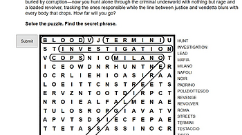 BLOOD ON THE COBBLESTONES - Word Search Puzzle Companion online puzzle to the solo poliziottesco RPG where you play a vengeful cop hunting through 1970s Roma's...