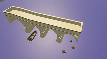 A scene made in unity from my bridge and barrel models, a boat model found here: https://www.turbosquid.com/3d-models/wooden-boat-1-1770456 , and a plane with a...