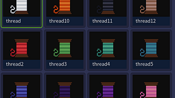 i made new crafting materials difrent kinds of threads for my crafting skill :D...