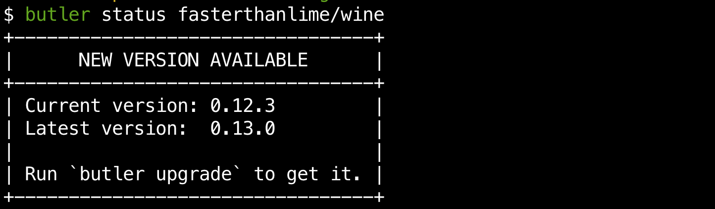 Since butler is a single executable file, you can always upgrade it at any time by downloading a newer version (from the links given in the Install page) and replacing your current version with it.