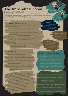 This is a Tabletop Role-Playing Game that can be played standalone or be incorporated in an ongoing campaing. The rules are short and fit one page.