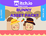 Bunny asset pack includes tilesets, bunny characters , dialog boxes and also cute hats