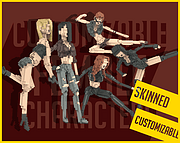 Skinned, animable, modulable, and customizable characters