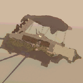 LOUTRA is sailing through the air. it is a floating castle. there is some construction work taking place on the underside. the atelier studio has disappeared, if it was ever there. it looks like an ab...