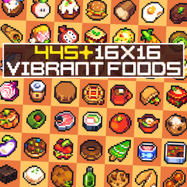 16x16 Vibrant Foods V2.0 is RELEASED! Featuring 100 new food icons! Some examples of the new foods are: New Dishes, Waffles, Yoghurts, Cornflakes, Churros, Meatpies, Stews, Muffins, Pizzas, Mochi's, C...
