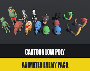 an animated fantasy cartoon low-poly monster asset pack