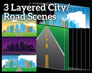 3 Layered and Animated City/Road Backgrounds for Use in Driving Games.