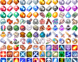 A collection of pixel art buttons from keyboard and the most commonly used gamepads.