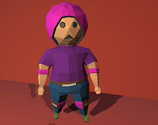 Lowpoly character with a helmet, elbow and knee pads, and a slightly overweight