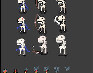 slime animations, chests in different stages, axe, pickaxe, swords, shovel, mattock