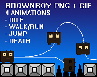 Brownboy animation, PNG + GIF: Idle, Walk/Run, Jump, Death