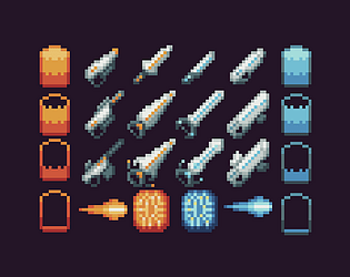 A bunch of pixel art assets befitting a top-down 2D sci-fi space shooter. One-time purchase, art still being added!